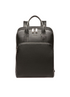 The Eduard men's business bag collection is defined by its sleek aesthetic, subtle Bally logo and enamel Bally Stripe branding and a multitude of organizational options, evident here on the leather Eranio backpack in black. Featuring double top handles and mesh padded shoulder straps and back panel, this men's backpack includes two main zipped compartments and a large front pocket with internal flat pocket organization. One of the central compartments includes pen holders, card slots, flat pockets, zipped pockets and a padded PC pocket that can hold up to a MacBook Air, whilst the second compartment can hold up to a 15in MacBook Pro as well as cables and other accessories in an internal mesh pocket. A trolley sleeve to the rear of this style allows it to be placed over the handle of an airport carry-on trolley bag for easy transportation.