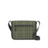 A messenger bag sculpted from check cotton and topstitched leather. The structured style features an adjustable strap and exterior slip and zip pockets for easy access.