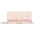 Baguette continental wallet with detachable, thin chain shoulder strap. The interior is laid out like a wallet with two gusseted compartments, a zip pocket, two flat pockets and ten card slots. Made of pink nappa leather with embossed FF motif. Gold-finish metalware.