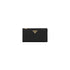 Sleek lines distinguish this wallet in iconic Saffiano leather. The accessory with snap closure and metal triangle logo has pockets and slots inside.